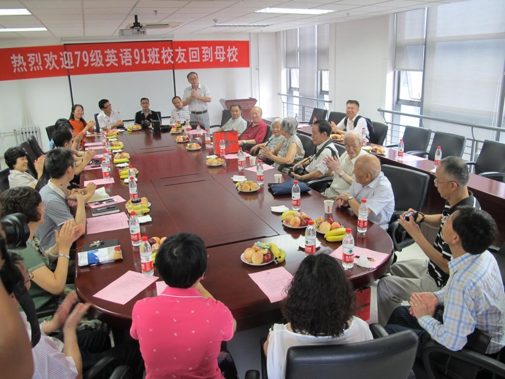 Time flies. Thirty years have passed since the graduation of alumni of English for science and technology (EST) in 1979. In 27th, July, School of Foreign Languages (SFL) hosted a Return-to-School activity for alumni entering in 1979, and warmly welcomed the first graduation of EST class coming from all corners of the country. The dean of SFL Yang Ruiying,secretary of the Party Committee Yang Xiaowei, the deputy dean Chen Xiangjing, retired teachers from SFL like Hao Keqi, Pan Neng, Zhou Guangfu, their Chinese teacher Wang Yannan, their physics teacher Yao Guowei, their former instructor Gu Weihui and some alumni of years 1983, 1984 and 1989 also attended this gathering. And this meeting was presided by alumni Li Renzhi who entered in 1979, and now a professor in Shantou University in Guangdong province.