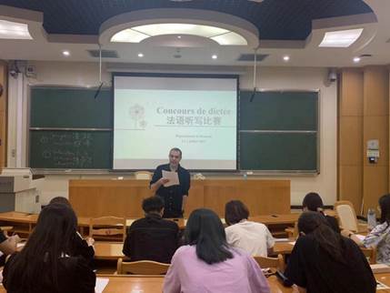 7月2日,法语系成功举办了小学期听写比赛,比赛由孟丽娜老师及外教Olivier组织,法语系一年级学生参加了比赛。 法语听写比赛是法语系传统竞赛类项目,参赛者在规定时间内完成短文听写,旨在考查参赛者法语拼写、配合、动词变位等法语语言基本功,引导他们基于各短文内容,开展文化、生态、经济等主题的思考。本次比赛选取两篇约各120词左右的文章,主题为土地及环境保护。比赛中,同学们专注听、思、写;赛后两位老师...