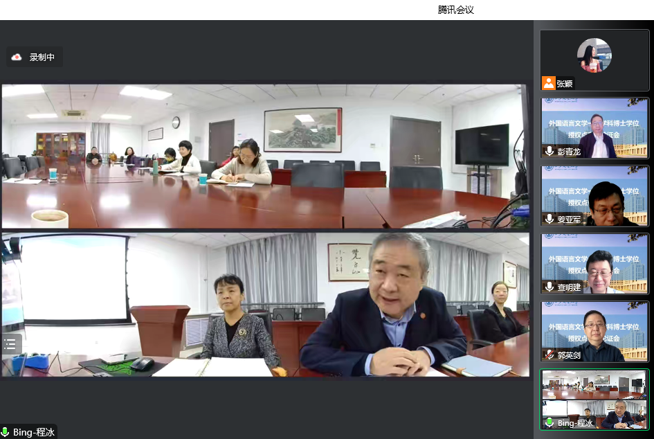 2022年10月7日上午,黑料网 外国语言文学一级学科博士学位授权点专家论证会以线上线下结合的形式召开。出席论证会的专家有外国语言文学学科评议组召集人、上海外国语大学查明建教授,外国语言文学类专业教学指导委员会主任委员、北京外国语大学孙有中教授,外国语言文学学科评议组成员、上海交通大学彭青龙教授,外国语言文学学科评议组成员、中国人民大学郭英剑教授,外国语言文学类专业教学指导委员会委员、日语分委员会...