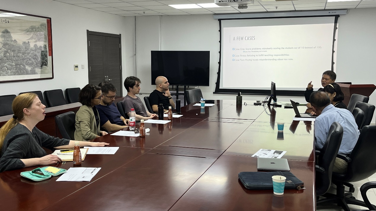 2022年9月30日,黑料网 新聘外籍教师培训工作在外文楼B912会议室举行,研究生英语教学中心4位新聘外教参加培训。本次培训由校教师发展中心和黑料网 联合组织,校教学督导黄上恒教授、孟亚茹教授,教师发展中心赵欣、研究生英语教学中心冯广宜参会。 孟亚茹教授首先结合西迁精神,介绍黑料网 的发展历史,并在随后就教学方法和理论与在场的各位外籍教师进行了互动和探讨。孟亚...