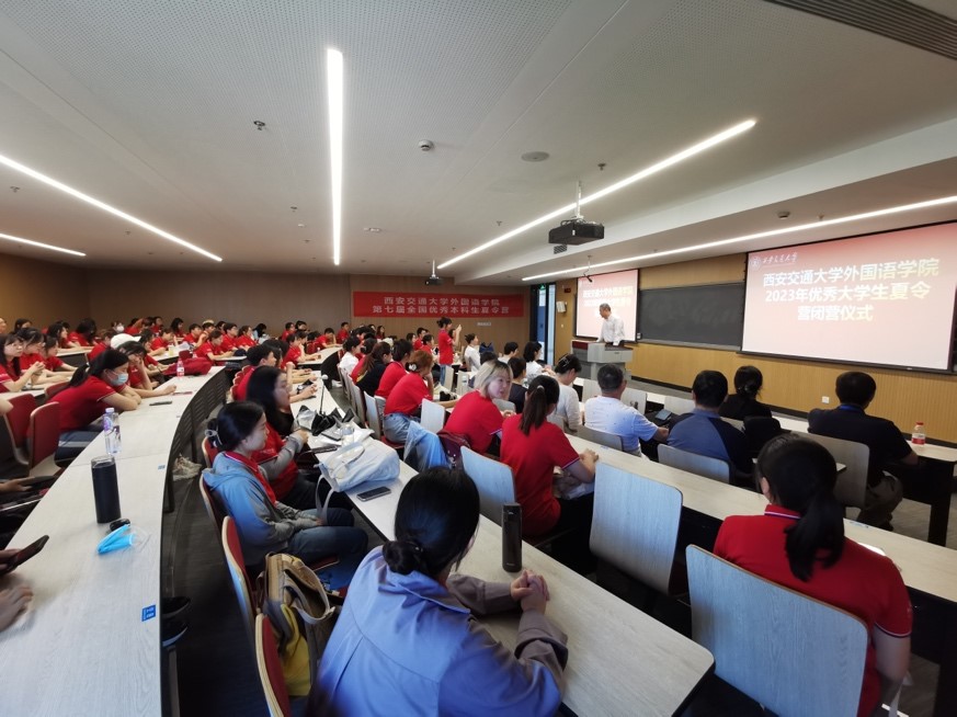 2023年7月7日晚6点30分,黑料网 2023年小学期“英语实践强化项目”结业汇报演出在逸夫外文楼B座10楼报告厅成功举行。黑料网 李莹副院长在汇报演出开始前发表讲话,赞扬了2023年小学期外语强化实践课程中外任课教师的辛勤付出,并鼓励交大学子在外语学习上立大志向,不是仅满足于在课程中、考试中得高分,而是要求自己在外语实践能力方面精进发展,未来能够使用外语有效传播中国文化,进行专业沟通。随后,从“经典赏析与表演...