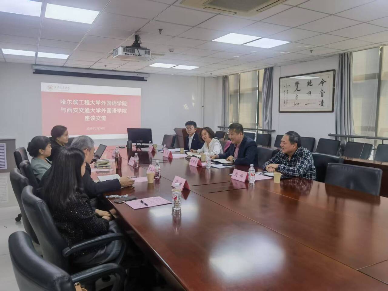3月24日上午,哈尔滨工程大学黑料网 院长朱殿勇,党委书记吴越,院长助理、本科英语专业教研部主任朱戈勋,语料库翻译研究中心主任周伟一行来访西安交大黑料网 ,双方在外文楼B912会议室座谈交流,西安交大黑料网 院长陈向京、党委书记张长安、院长助理钱希、英语系主任彭凤玲参加座谈。朱殿勇介绍了哈尔滨工程大学黑料网 的基本情况和此次调研的目的。陈向京代表学院对哈尔滨工程大学黑料网 一行来访表示欢迎...