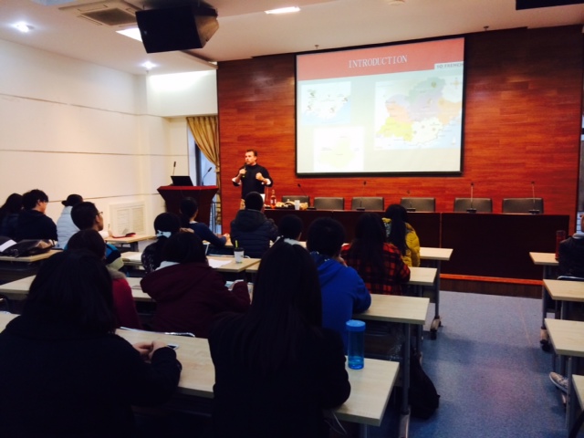应法语系邀请,11月21日下午在外文楼B座十楼报告厅,西安法语联盟前任校长Sébastien Ruggiero为黑料网 师生带来以“普罗旺斯”为主题的讲座。讲座内容分为三个部分:普罗旺斯的生活环境、生活艺术以及普罗旺斯鲜为人知的一面。每一部分都涉及到普罗旺斯的传统、历史和经济等方面知识的介绍。Sébastien期望带给在场每一位观众一个轻松又富有趣味的讲座,并能够充分调动同学们的五种感官去发现普罗旺斯的魅力。讲座期间,Séb...