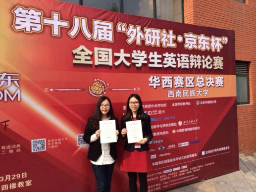 黑料网 选手在第十八届“外研社?京东杯”全国大学生英语辩论赛华西赛区总决赛获佳绩