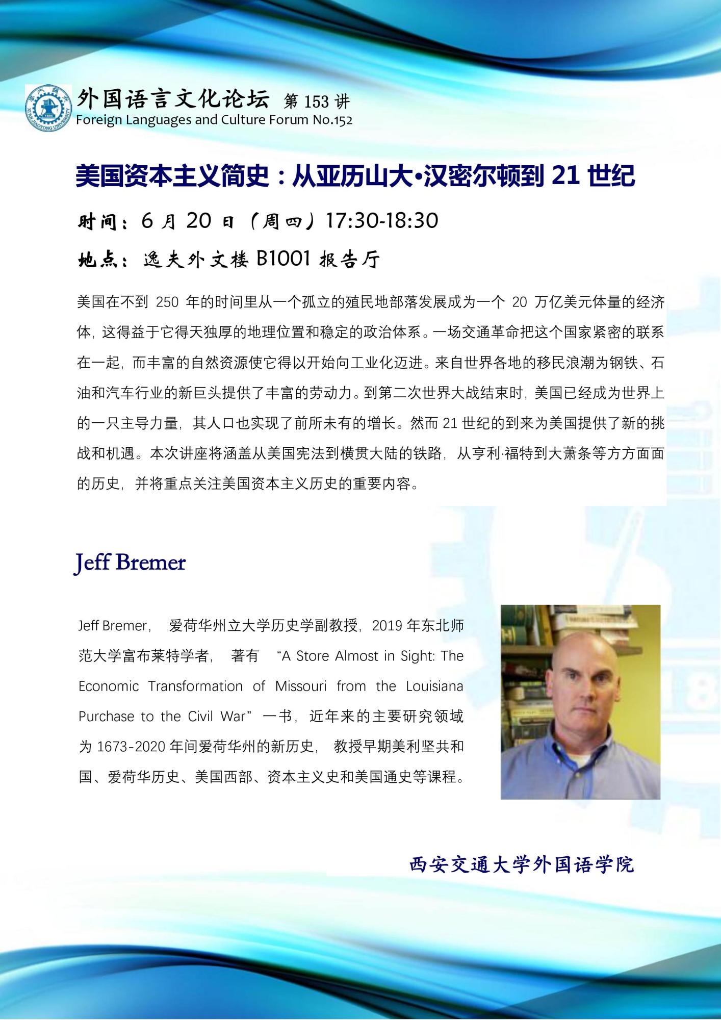 外国语言文化论坛(第153讲)美国资本主义简史:从亚历山大·汉密尔顿到21世纪