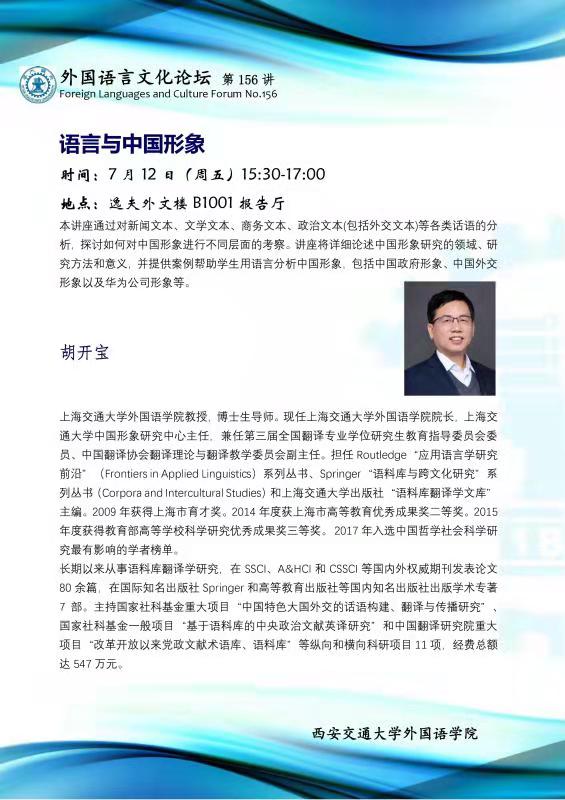 外国语言文化论坛(第156讲)—语言与中国形象