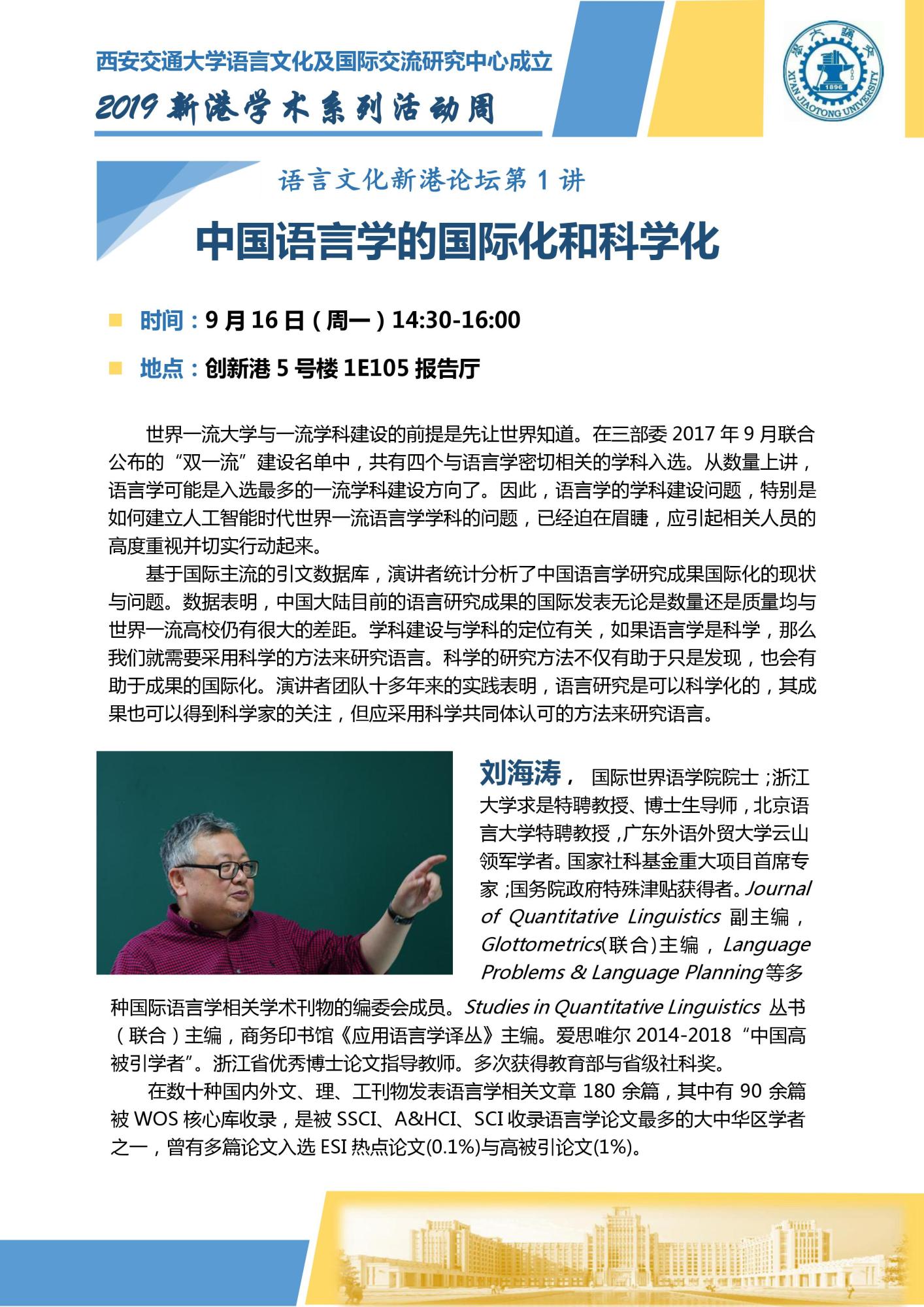 语言文化新港论坛第1讲-中国语言学的国际化和科学化