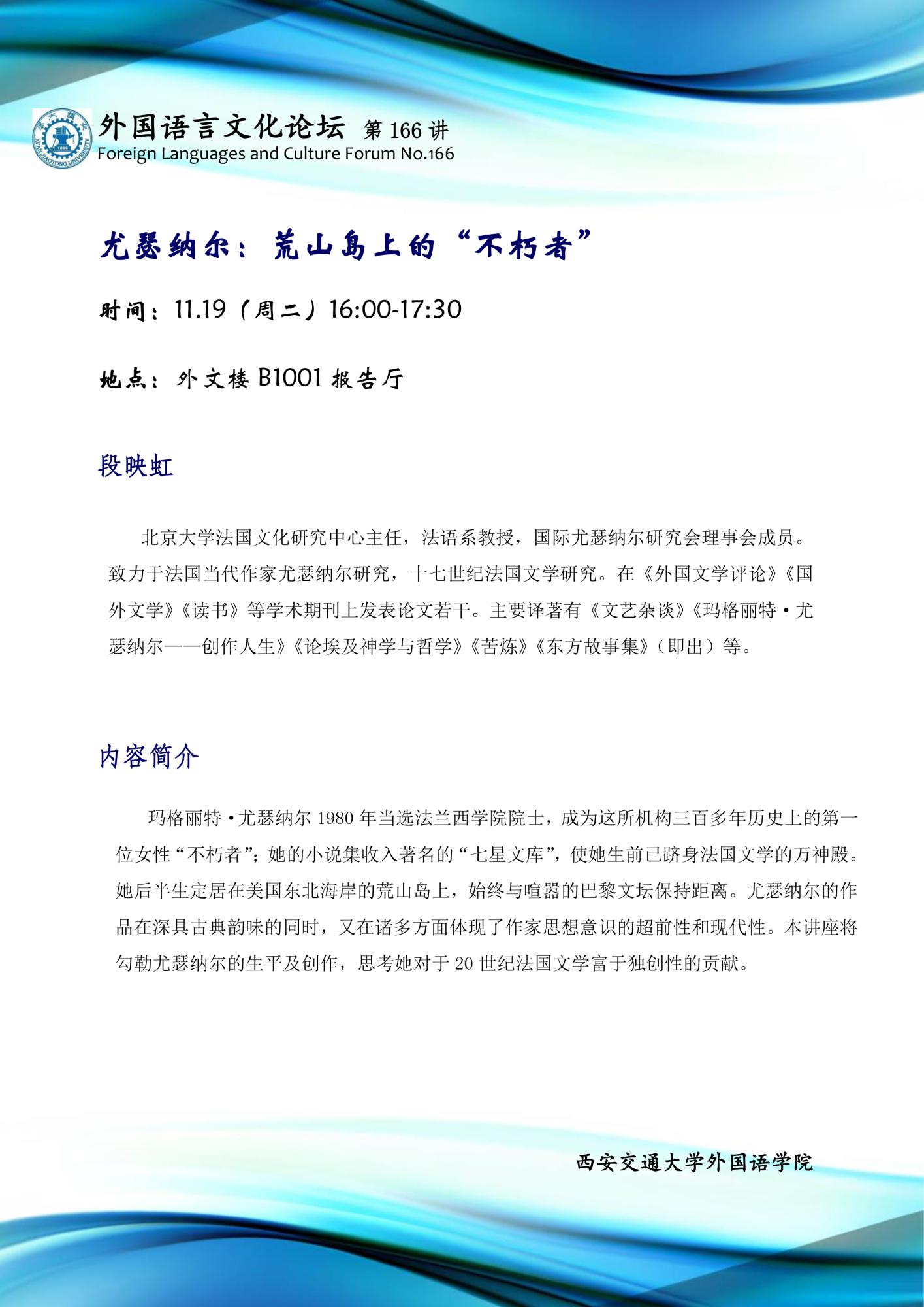 外国语言文化论坛(第166讲)—尤瑟纳尔:荒岛上的“不朽者”