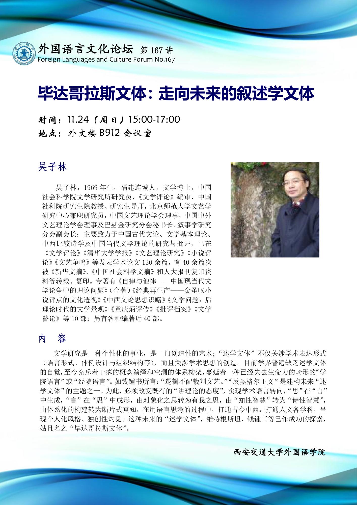 外国语言文化论坛(第167讲)—毕达哥拉斯文体:走向未来的叙述学文体