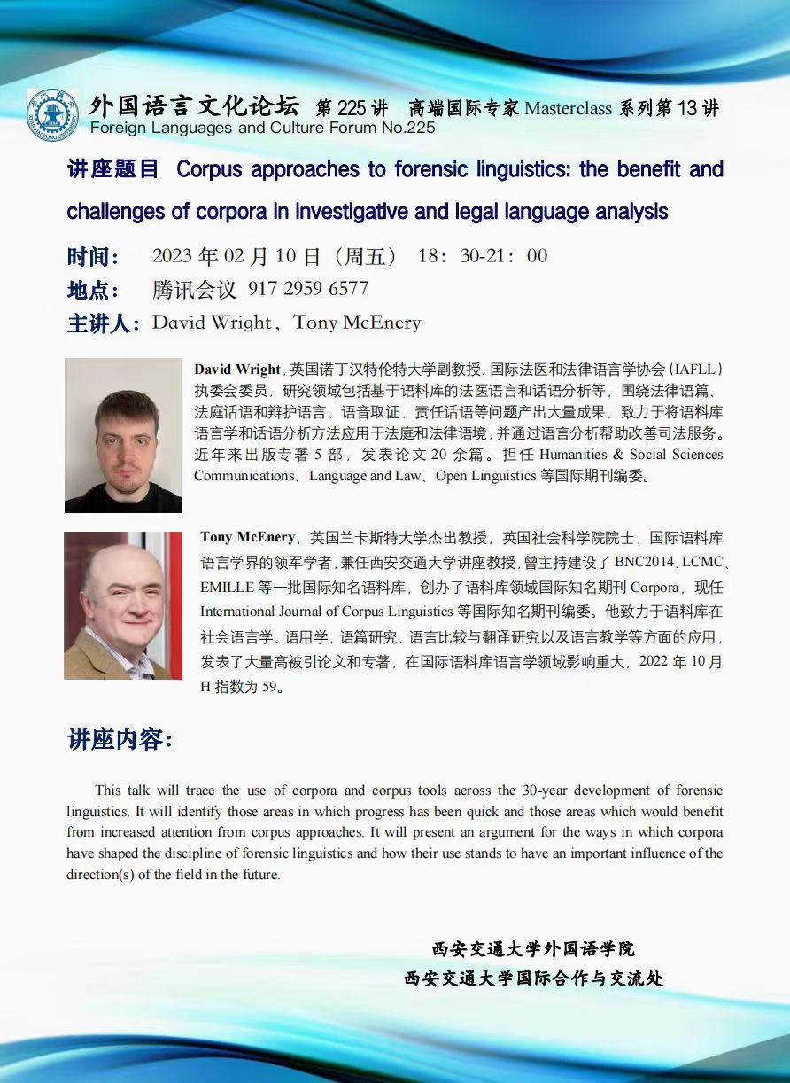 主讲人 David Wright,Tony McEnery