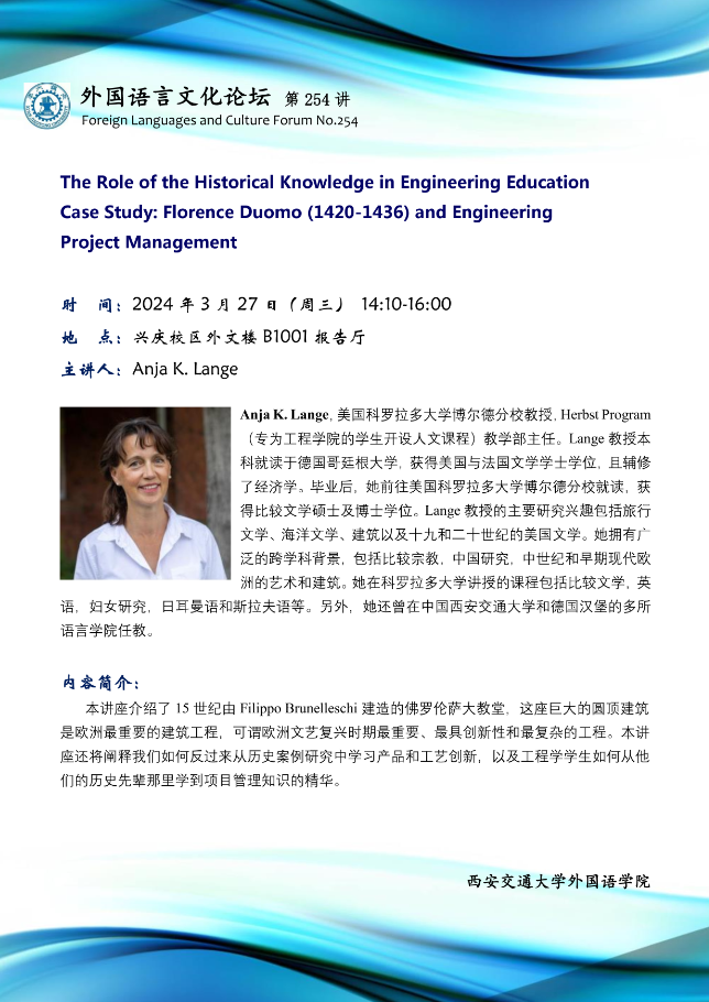 时间 2024年3月27日(周三)14:10-16:00 地点 兴庆校区外文楼B1001报告厅