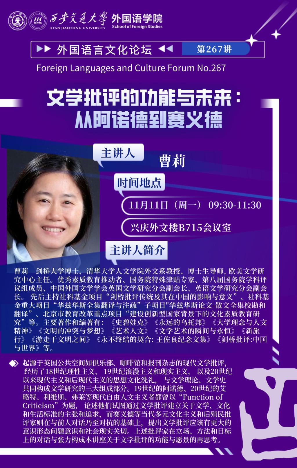 时间 11月11日(周一)9:30-11:30 地点 兴庆校区外文楼B715会议室