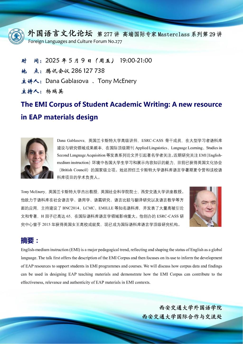 主讲人 Dana Gablasova, Tony McEnery