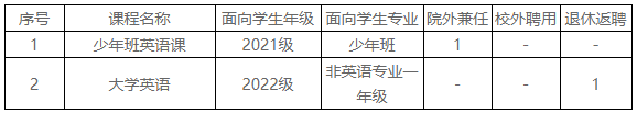本次仅招聘承担外语基础课授课任务的兼职教师,聘任岗位具体信息见下表。