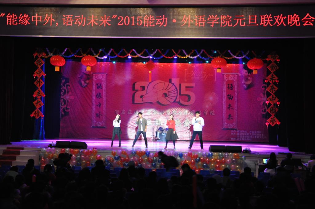 和能源与动力工程学院联合举办的“能缘中外,语动未来”2015年元旦联欢晚会在宪梓堂隆重进行。同学们精心准备的14个节目将晚会推向一个又一个高潮,两院师生欢聚一堂,共度欢庆之夜。