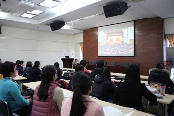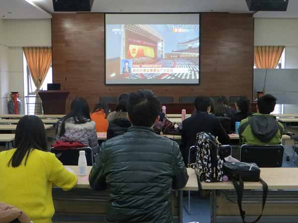 积极响应学校号召,组织学院师生在外文楼B座十楼报告厅观看,学院领导、教工党员、研究生党员、入党积极分子、团员近60人现场观摩学习。
