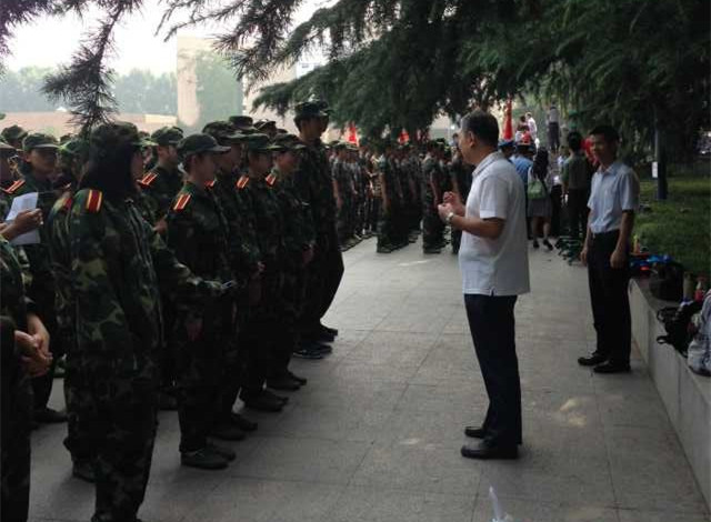 分党委书记杨小渭,副书记张长安,院办主任孙波玲来到四大发明广场代表学院开展军训慰问活动,军训教官、学院军训带队教师李文君以及2015级全体本科生参加,张长安副书记讲话。