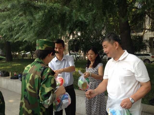 随后,杨小渭书记、张长安教授、孙波玲老师为军训教官、带队教师及全体同学发放慰问品。军训结束后,学院还将组织专业教育,使同学们尽快明确专业思想,适应大学学习。