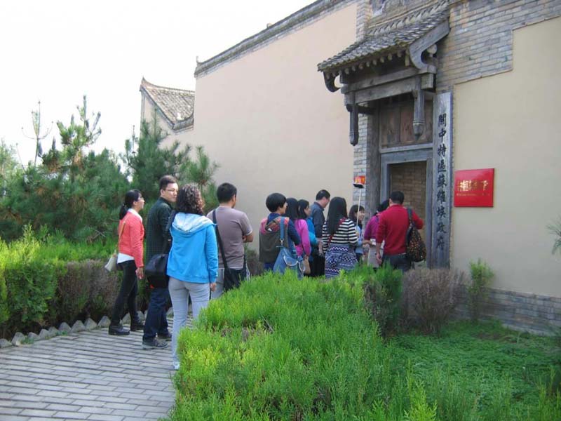 午后,党员们又来到位于旬邑县职田镇东南2公里处马家堡关中特区旧址参观。马家堡在土地革命战争后期和抗日战争前期曾是中华苏维埃共和国关中特区陕甘宁边区关中分区革命斗争的指挥中心。该馆包括习仲勋旧居,以及关中特委、特区苏维埃政府机关旧址等。参观过程中,英语教师的职业习惯使得他们非常关注纪念馆和旧址各种铭牌的英文翻译,他们发现了纪念馆英文翻译的多处错误并及时提醒管理人员。