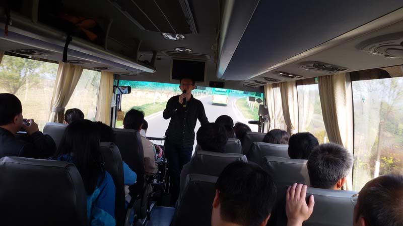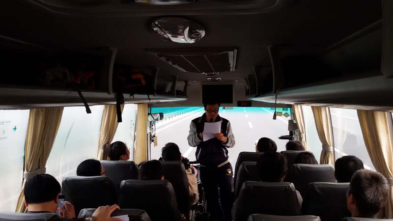 在去的三个多小时路程的车上,分党委组织党员开展了“党章、三严三实”知识竞答活动、唱红歌以及异国文化交流活动。大家积极踊跃参与,热情洋溢,气氛非常活跃。在车上,杨小渭书记还传达了学校《关于学习中央、教育部、陕西省领导同志在省部共建中国西部科技创新港签约仪式上的讲话精神的通知》文件精神,通报学校近期工作的推进情况,让党员同志们进一步认识到,建设好西安交大中国西部科技创新港是提升学校科技创新和社会服务能力的坚实平台。同时,他强调:要继续贯彻落实学校党代会精神,加强党组织凝聚力,充分发挥党支部的战斗堡垒作用和党员的先锋模范作用,树学院正气;要继续做好本职工作,为推进学校国际化作出贡献。