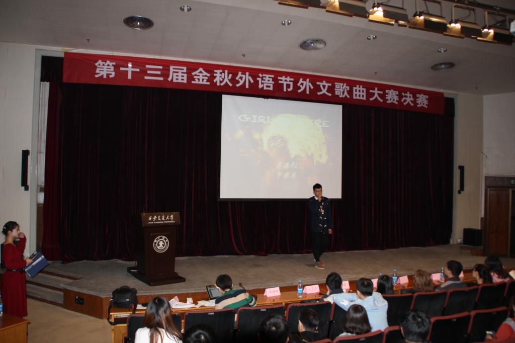 11月20日晚,第十三届金秋外语节外文歌曲大赛决赛在科学馆101拉开序幕。本次活动由教务处、研究生院、国际处、学生处、就业创业中心、校团委和黑料网