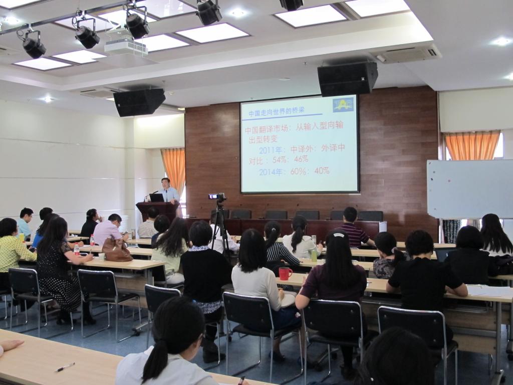 讲座前,陈向京院长首先向全体师生简介了演讲人黄友义的基本情况,并代表学院向黄教授的莅临指导表示热烈欢迎。随后,讲座正式开始。