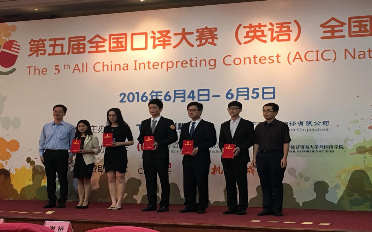 “中译杯”全国口译大赛是我国口译类竞赛中影响最广、最具权威性的高级别赛事,本次大赛的评委包括:外交部翻译司英文处处长周宇女士,商务部国际商报副社长、CCTV英语频道时政评论员王学文等。赛后评委点评时,王学文老师指出,“总决赛八强选手代表中国青年翻译的最高水平。”