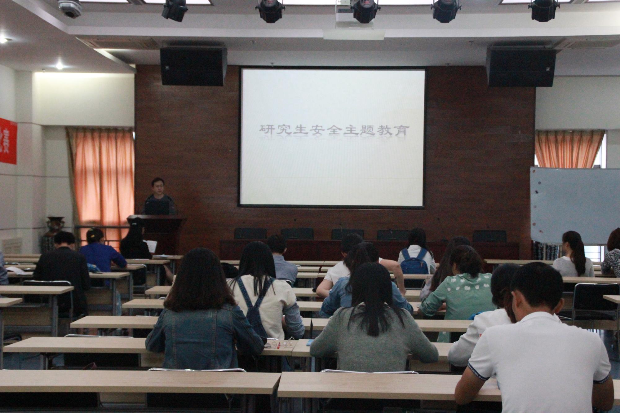 学生安全主题教育会在逸夫外文楼B座10楼报告厅举行,学院全体硕士研究生、博士研究生及本科2016级学生干部参加会议。