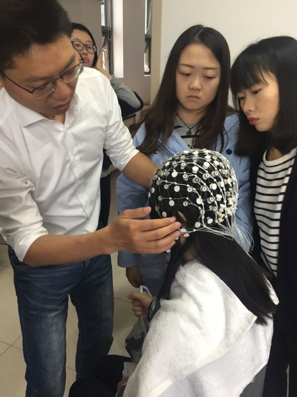 11月4日,在实验室设备安装并调试完毕后,张扬教授指导进行了语言与认知神经科学实验室第一个ERP(事件相关电位)演示实验,实验旨在通过脑电设备来检测被试大脑对一组困难英语语音的范畴化感知程度。研究兴趣浓厚的陕西师范大学、西安交大黑料网