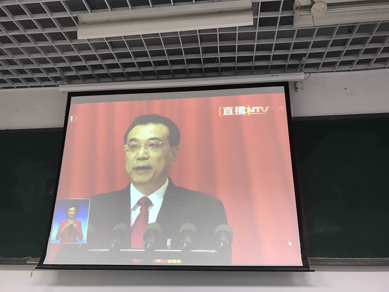 在第一时间组织师生通过网络、电视、微信、手机平台等多种渠道观看了开幕式,紧密关注政府工作报告并展开了热切讨论。