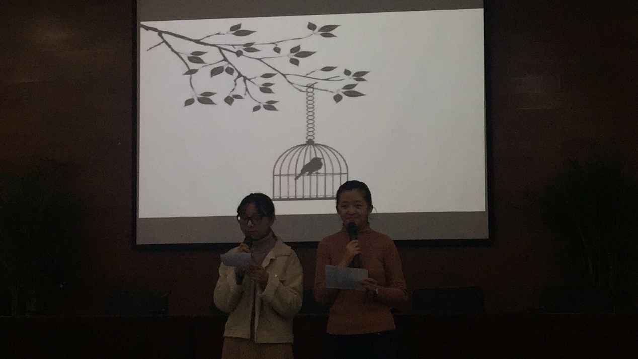 一年级同学勇于尝试,声情并茂地朗诵了Jacques Prévert的小诗《为小鸟画像》。