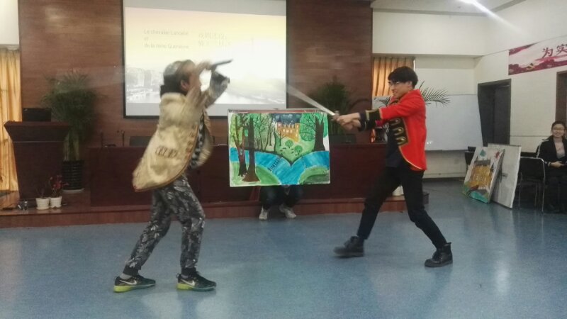 二年级同学精心准备的戏剧选段《骑士兰斯洛与桂妮薇儿》更是以生动的戏剧表现力将大赛氛围推向了高潮。这些精妙绝伦的表演给现场观众及评委留下了深刻印象,赢得阵阵掌声。