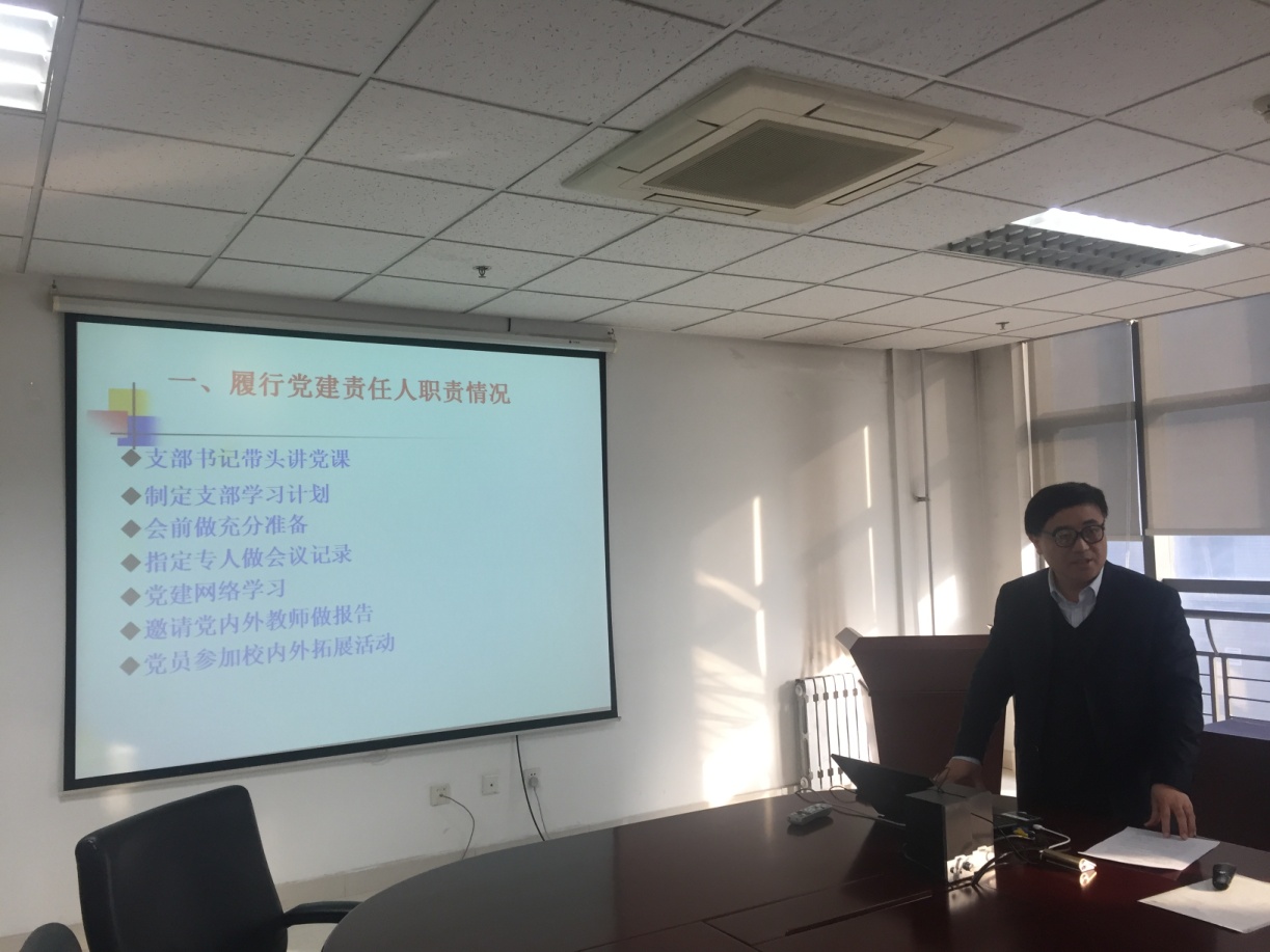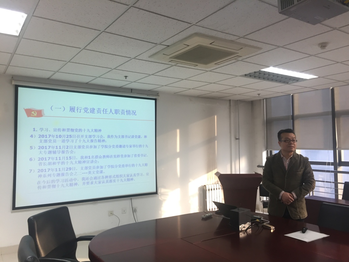 分党委在外文楼B912召开2017年度支部书记述职会。全院6个教工支部和3个学生支部书记逐一进行述职报告。会议由黑料网
