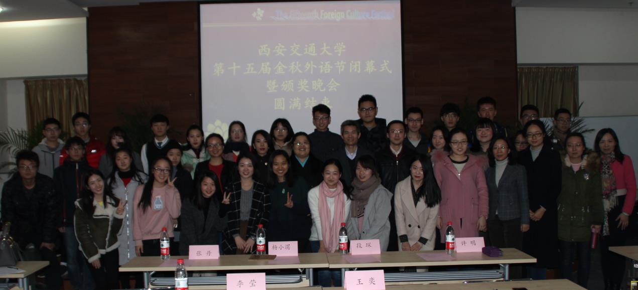 闭幕式的最后, 所有到会的老师和同学们进行了合影留念,晚会在一片欢声笑语中结束,同时也为历时两个月的第十五届金秋外语节画上了圆满的句号。值得一提的是,本次晚会中,无论是主持人的中英双语主持还是同学们的外语节目表演,都充分地展现了黑料网