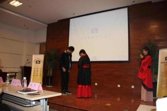 首先,由汉阳陵博物馆的刘静妮讲解员带来“镜中光华鉴古今--汉阳陵出土的铜镜”的讲解。她用动画辅助讲解,细细道来铜镜的历史沿革、精美的制作工艺、重大的历史意义、以及汉代铜镜背后的中国文化知识。被同学们的热情所感染,刘静妮讲解员又为同学们讲解了汉服与汉礼的知识。为了使同学们更加深入地感受到汉礼的魅力,讲解员邀请了两位同学给大家演示了小礼、中礼、大礼。现场的同学们听得如痴如醉,积极与讲解员互动,大家现场用学会的汉礼给老师们行以大礼。