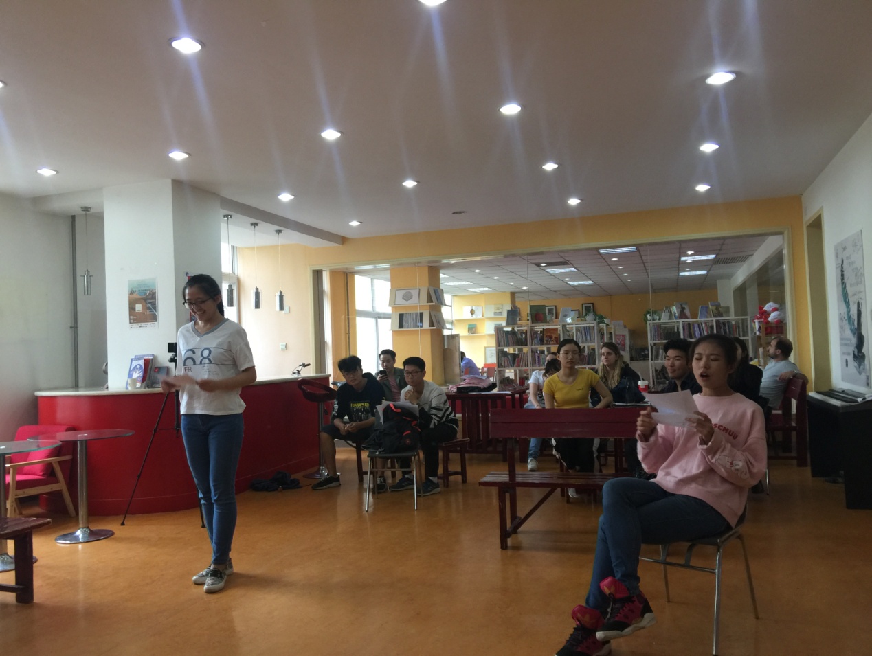 我系派出的三组参赛队员均很好地完成了表演,受到评委赞誉。对于一年级的同学来说,在如此短暂的时间里熟读台词,生动地演绎角色,实属不易。其中李菲、何乔楚同学设计的情节颇有新意,表演自然流畅,最终获得第二名的好成绩。