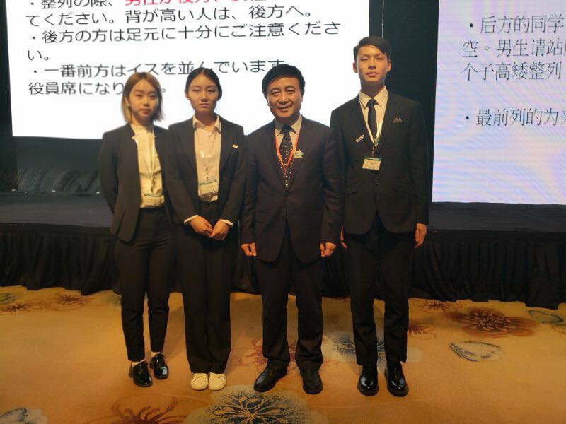 日语专业有四名本科生获奖,其中一名学生正在日本留学,李国栋老师带队三名在校的获奖学生参加颁奖仪式。