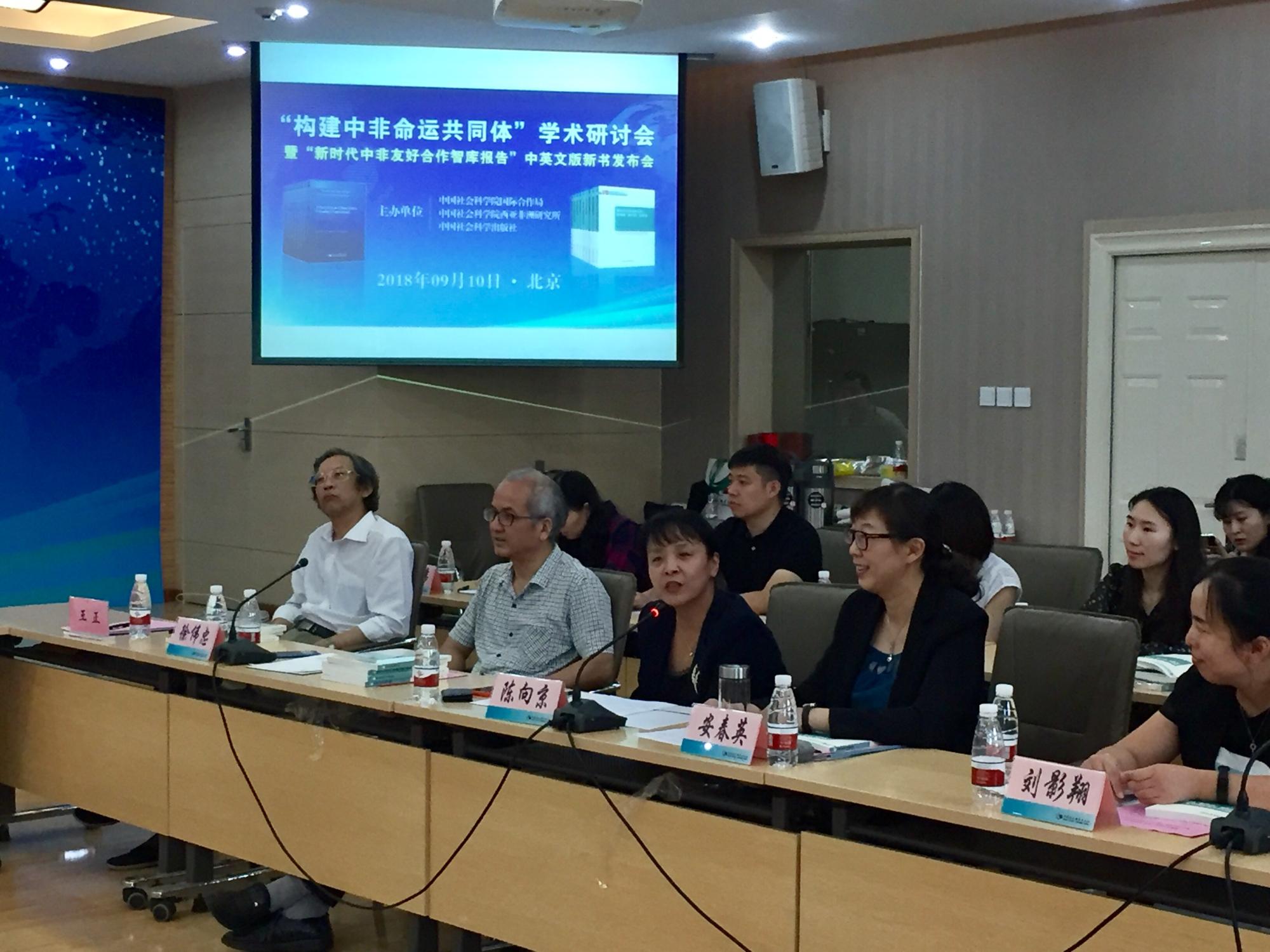 2018年9月10日下午,“构建中非命运共同体”学术研讨会暨“新时代中非友好合作智库报告”中英文版新书发布会在中国社会科学院西亚非洲研究所举行。本次会议由中国社会科学院国际合作局、中国社会科学院西亚非洲研究所、中国社会科学出版社联合举办。智库报告作者及译者、非洲问题专家以及多家媒体机构参加了会议。陈向京院长代表学院作为“智库报告”的译者单位出席了会议。