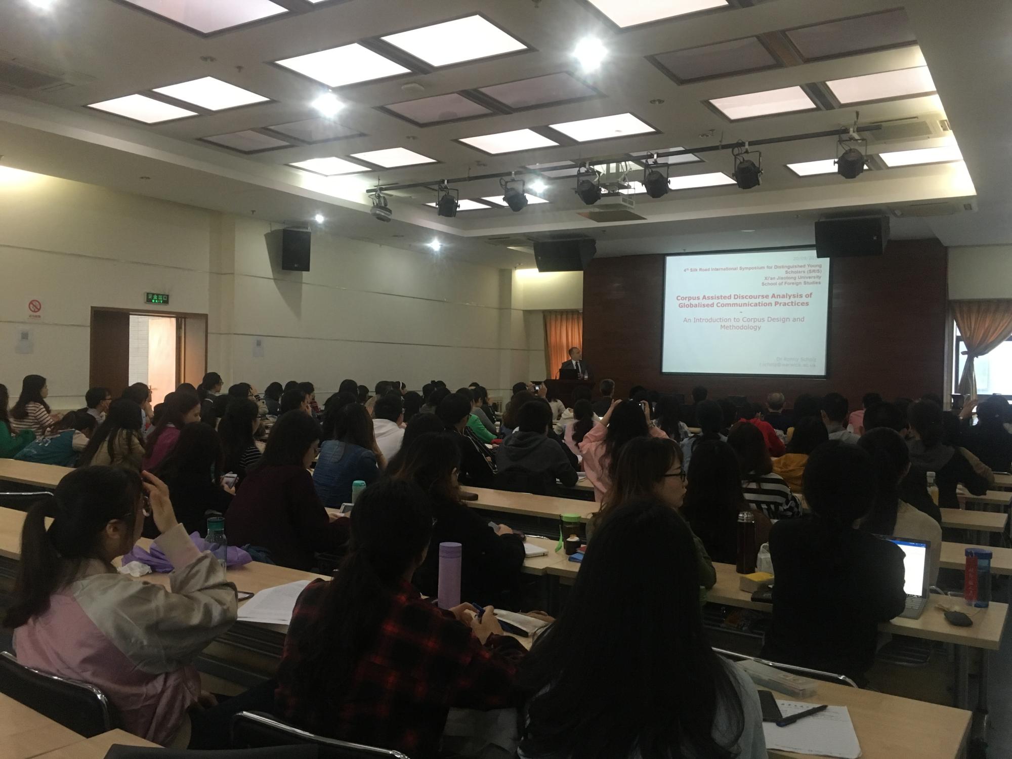 Ronny Scholz的讲座题为“Corpus Assisted Discourse Analysis of Globalized Communication Practices. An Introduction to Corpus Design and Methodology”,他从五个方面展开了本次讲座,分别从语料库概况,语料库语言学概况,语料库语言学在欧洲相关研究,语料库类型和设计,基于语料库的全球化传播实践。他提到,语料库在欧洲的发展史悠久,从13世纪圣经的索引,19世纪研究语言习得,到20世纪研究语篇中的意识形态。他同时提到建设语料库需要注意代表性,大小,文本类型和标注方式。