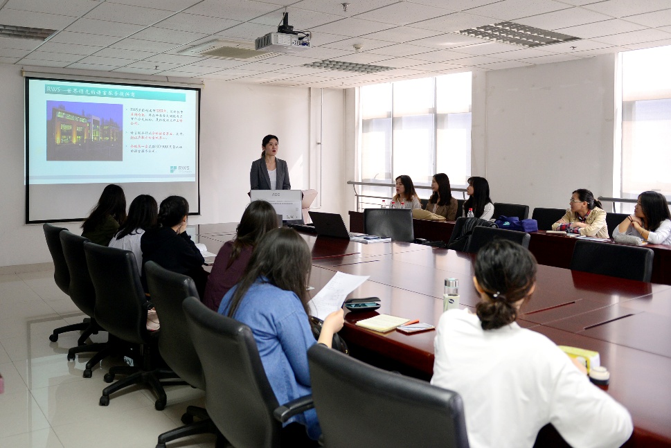 医学校区的西安交大-北京如文思语言服务和科技创新实践基地(以下简称“西安交大-RWS实践基地”)。北京如文思副总经理郑金凤女士为导师们介绍了如文思公司的历史沿革、行业声誉、业务板块、及人才需求等。西安交大-RWS实践基地的工作人员详细讲解了了翻译项目流程管理、翻译流程及如何利用Trados插件提高翻译速度和质量(译审)。之后,双方就课程合作、学生顶岗实习等进行了活跃而细致的交流,形成了新的合作思路。