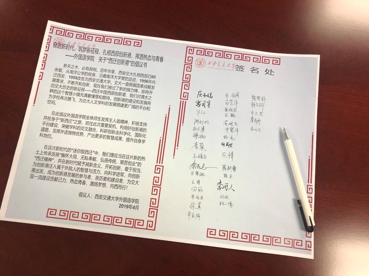 中国西部创新港——我们对渭水之畔的这个智慧小镇充满着憧憬和期待。在这次新时代的“迷你版西迁”中,我们理应当在这片新的热土上传承发扬“胸怀大局,无私奉献,弘扬传统,艰苦创业”的“西迁精神”,并在新时代为其赋予新的含义,开拓创新,敢于担当,为创新港注入属于外院人的智慧与活力,为交大双一流建设贡献己力,热血青春,激扬梦想,向西而行!