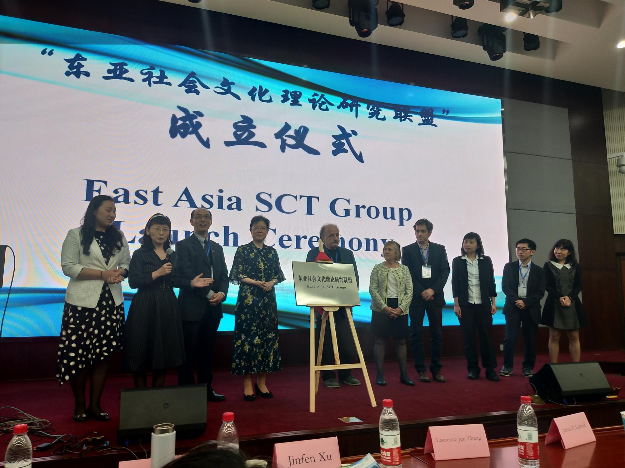 在到场嘉宾和参会师生的见证下,James P. Lantolf詹姆斯·兰道夫和徐锦芬为“东亚社会文化理论研究联盟”揭牌 。