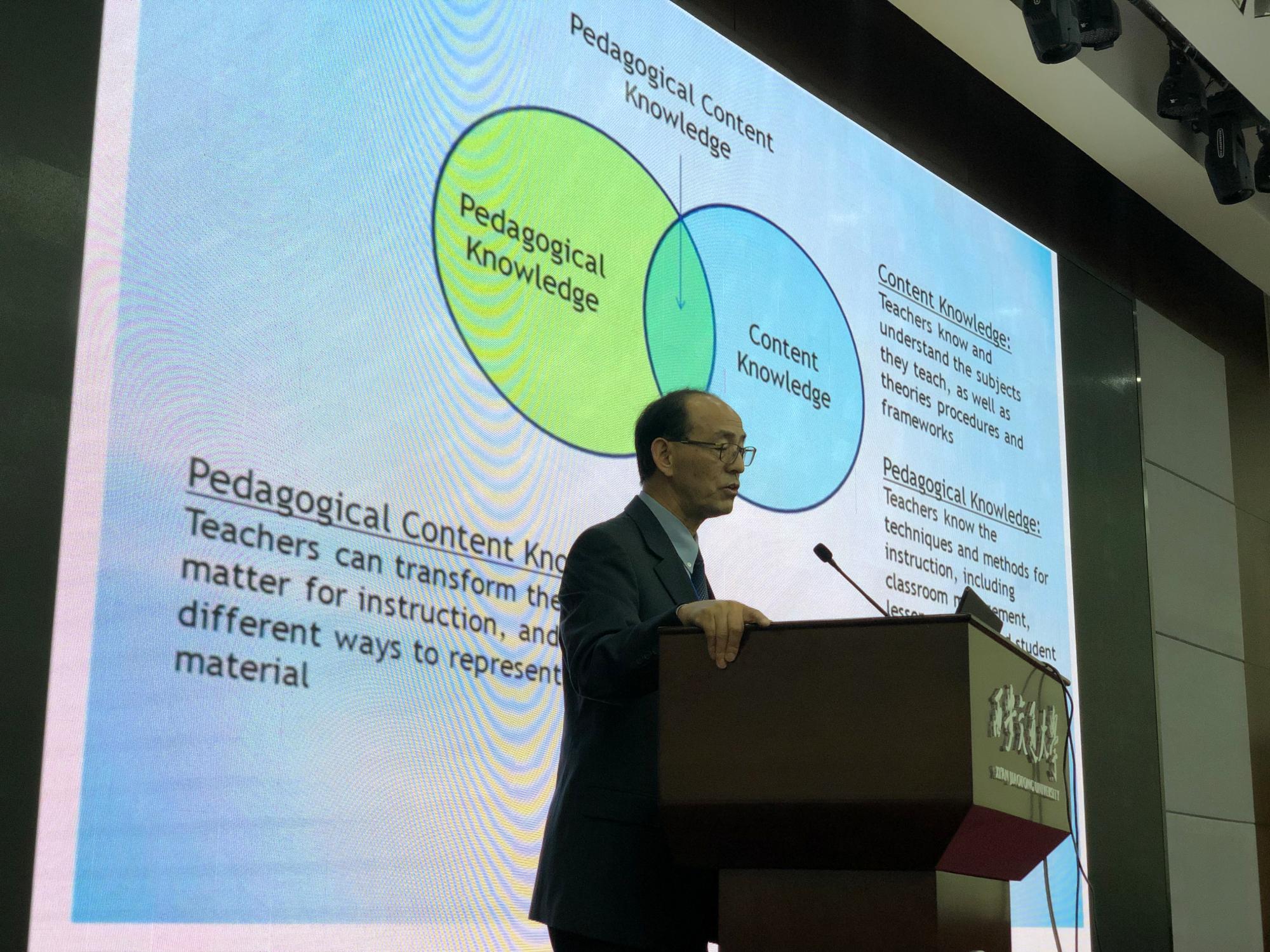 张军教授做了题为“Teacher Learning in an Ever-changing Era: Teacher Effectiveness to Teacher Cognition in the Language Classroom”(“多变时代中的教师学习——课堂教学的有效性和教师认识”)的发言,重点阐述了教师认知所包含的几个方面:教师信仰、知识储备、教学观、对教与学的反思等。Eduardo Negueruela-Azarola爱德华多·尼格瑞拉做了题为“Transformative Research and Teacher Education: A Sociocultural Take for Second Language Practitioners”(“变革研究和教师发展:社会文化视角”)的发言,他以社会文化心理学理论为背景,举例说明外语教师教学的基本原则,如何将实践理论转变为理论研究的实践, 即变革性研究。杨鲁新教授做了题为“Bridging Theory and Practice: Teacher Learning through Research Lessons”(“研究型课堂:跨越理论与实践的桥梁”)的发言,她以两位教学超过15年的小学英语教师的课堂教学为例,分别介绍了以SSR(持续默读)阅读法和思维导读方法,如何养成小学生英语阅读习惯和良好的阅读体验、具体实施办法、教学效果、教师反思等。