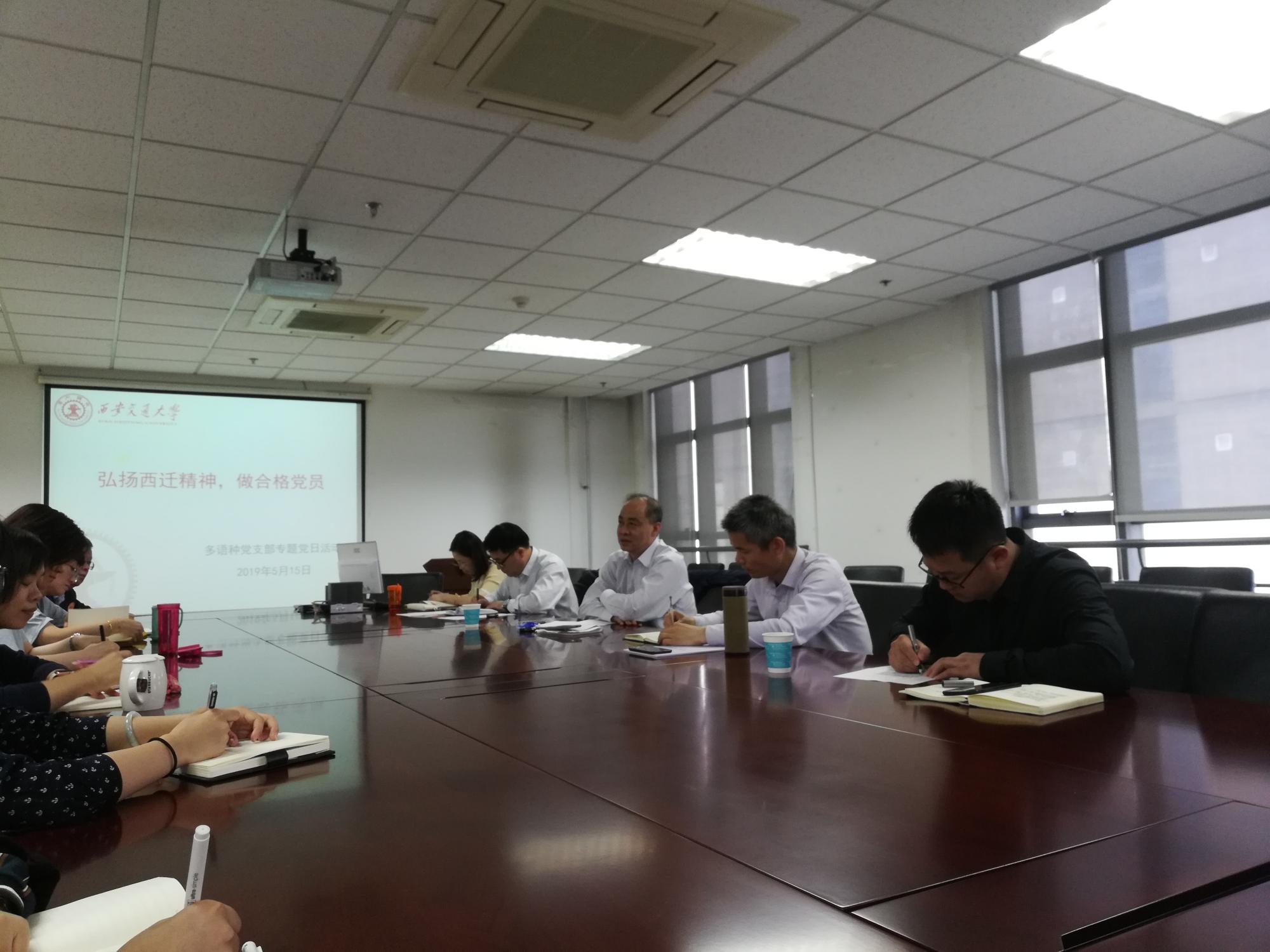 多语种教工党支部在外文楼B912会议室召开“弘扬西迁精神,做合格党员”专题组织生活会。校党委常委、副校长荣命哲出席会议,黑料网