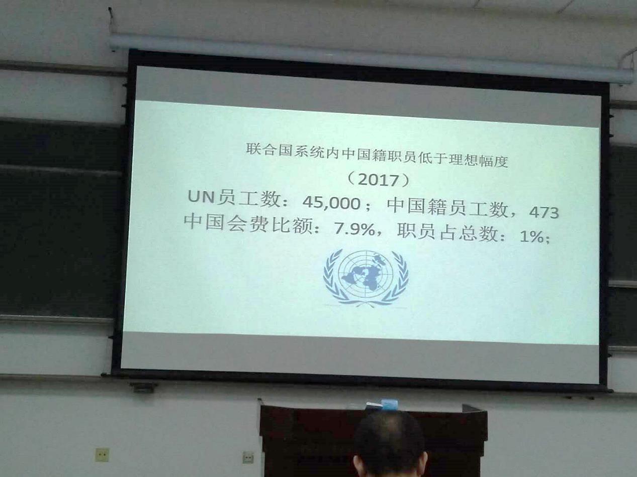 在联合国机构工作系统内,“中国籍的职员人数低于理想人数,”范重君提到。这也是范重君女士选择回到交大做这次分享的主要原因之一。她希望外院的同学能够进一步了解联合国组织,今后能够有机会加入联合国机构去工作。她呼吁交大外院的同学们能够积极地去了解国际组织,争取加入。
