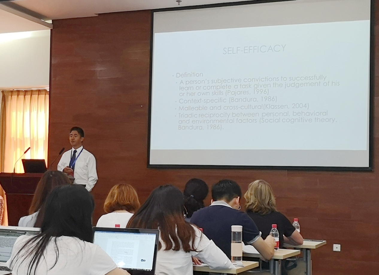 香港中文大学白蕊(Barry Bai)教授研究自我效能、自我调节、兴趣和任务对英语学习者收获的影响。他表示,个人的智商具有段造性,也是提高学习效率强有力的工具。他通过计划、文本生成、修正及反馈策略,设计问卷,在写作课堂上应用教学方法,发现兴趣是最好的老师,个人成长远大于效能的得失,提出寓教于学的建议。