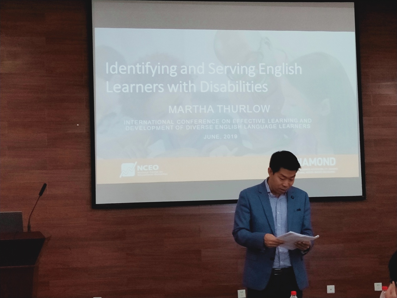 美国明尼苏达大学瑟洛教授玛莎·瑟洛(Martha Thurlow)提到美国高校调查的一组数据,43%的学生具有学习障碍问题,12%的美国学生英语学习时存在障碍,指出文化背景影响大众对待此类问题的看法。她提出常规解决办法:根据学生需求,设计教学。教学目的是使学生获益,使学生收获知识,目标为教学提供方向。教师应从实例、证据着手,分析、统计数据,发挥团队效应,设计满足需求的教学模式。此外,她介绍了美国关于学习障碍群体的法律,各州的教育标准,令在场听众对如何更好地服务有了全面认识。