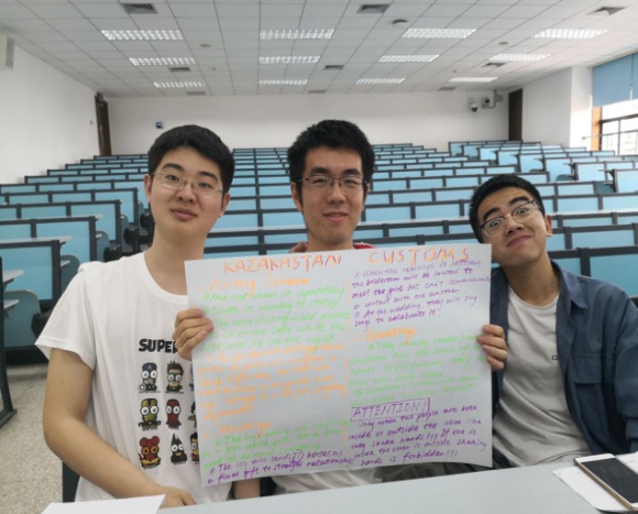 这是自信之火,定能以燎原之势发掘我们内心潜在的力量。很多同学之所以不敢说英语,正是因为他们从不知道自己可以说得有多好。当外教课给予我们机会让我们勇于突破自己迈出第一步时,我们会突然发现自己原来可以做得很好,这正是潜能的爆发。一次外教课老师要求我们小组调查哈萨克斯坦文化并制作汇报记录,我突发奇想:能不能突破传统模式制作一个不一样风格的海报呢?于是我们小组用不同颜色的荧光笔书写不同的内容,同时自行添加装饰画,还在最后画上了哈萨克斯坦国旗。当我看到成品后,那是一种从未有过的激动与感动,我以前从来不知道自己原来能够画得这么好,我看到了不一样的自己,这也算是外教课上另一大收获吧。