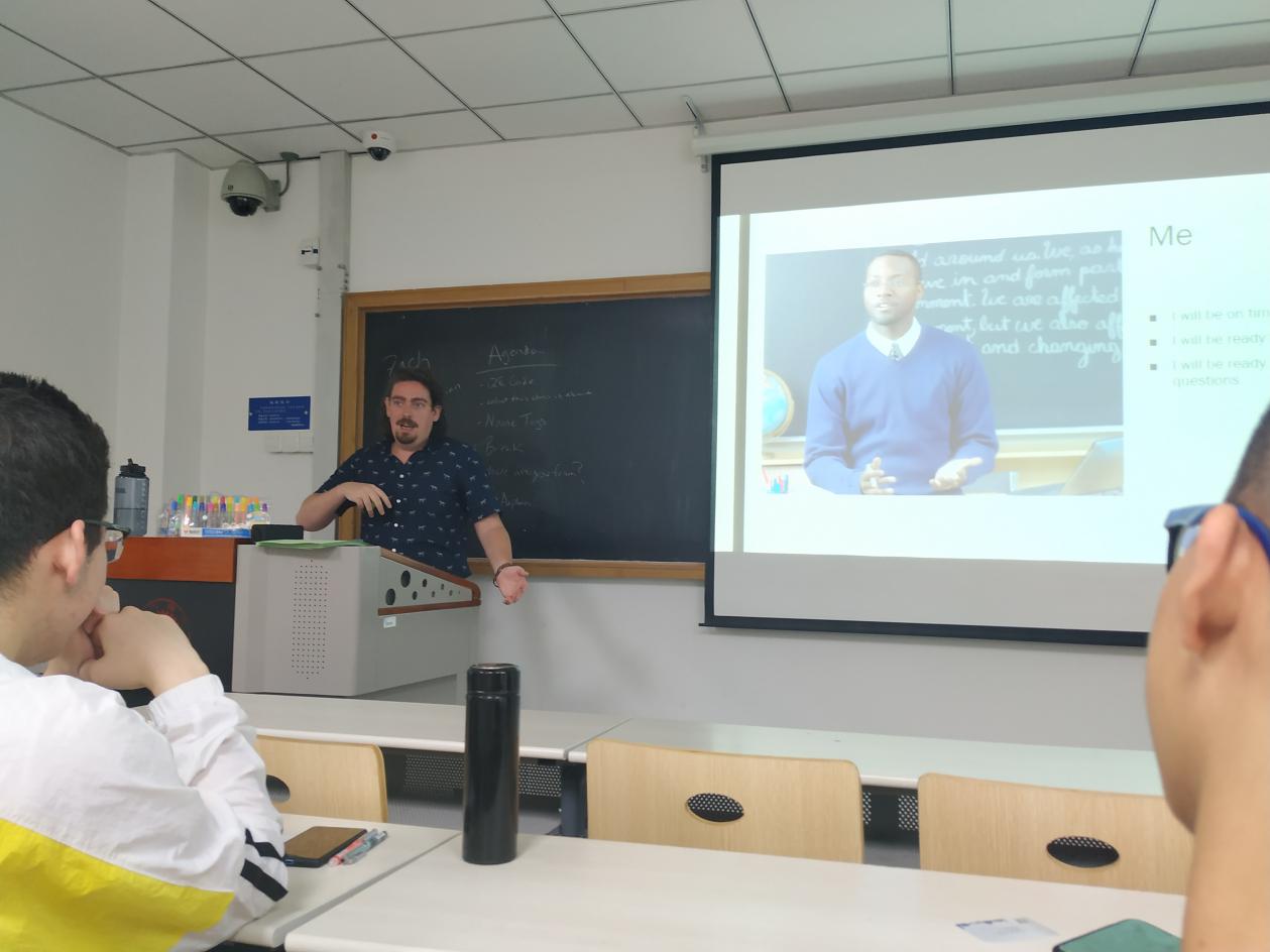 不知不觉中,小学期英语强化实践进入了第二期。第一天上课,同学们会怀着怎样的心情呢?来听听B95班李佳隆同学的描述吧:“‘绿阴生昼静,孤花表春余’,随着考试月的结束,我们步入了丰富的小学期生活。来自世界各地的外教老师如期来到古都西安,愉快而充实的英语教学拉开帷幕。这不仅是一次英语教学上的合作,更重要的是一次思维的碰撞、文化的交流,同样也是见证我们黑料网