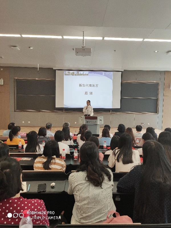 导师代表桑仲刚教授就自己的研究经历对新生们提出了宝贵的建议,他希望同学们能在新校区、新学期让自己新的学习生活有一个良好的开端。老生代表孙奇锋同学介绍了自己在生活和学习中成长的经验,鼓励学弟学妹们发挥自己的外语优势,积极投身语言服务活动,敢为人先,展示外语学子的风采。2019级新生代表周婵同学在发言时首先对在暑假还为学生热情服务的各位老师表示感谢,并对自己即将到来的研究生生活充满了向往,她代表新生表示在今后的学习和生活中一定会践行和传承西迁精神,严于律己、求实创新,收货一份实至名归的真才实学。